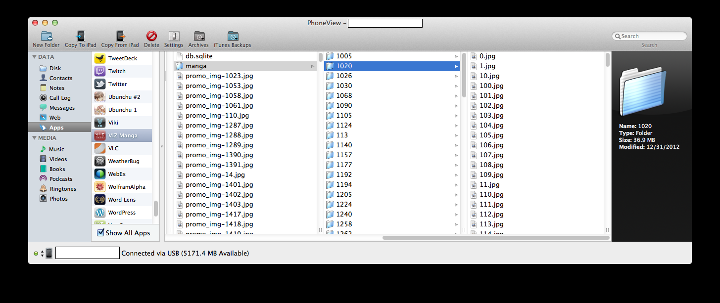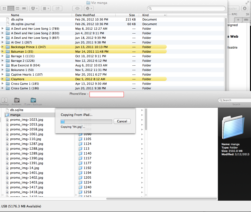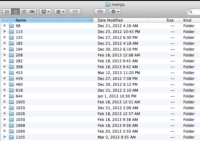 - You can select a single folder or all of them at once and just drag them to wherever you want them to live on your computer. If you’ve bought a lot of manga this may take a while as you pull a couple GB of data over a USB connection. As you can see from the screenshot, these are just folders containing .jpg files: