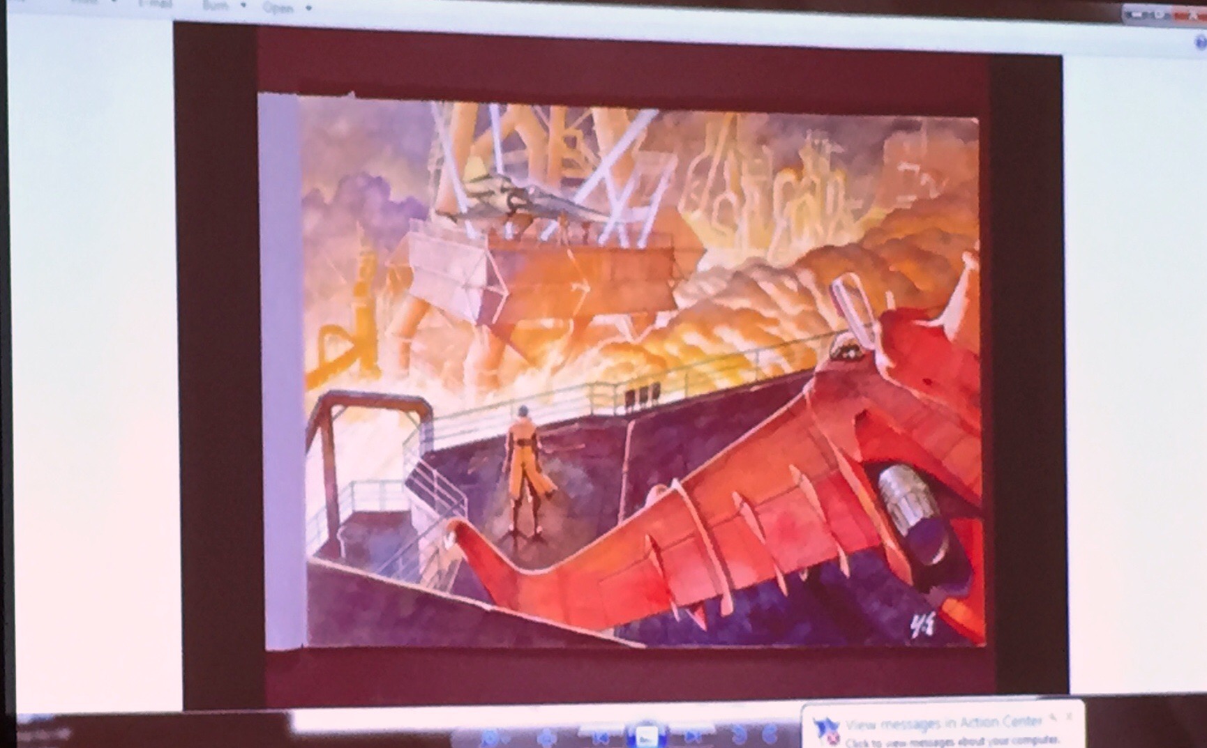 No character names were mentioned, and Mr. Yamaga only really discussed the lead, who comes from a desert town and was raised to be like a knight for his people. He’s very skilled in combat – having managed to keep winning plane duels and survived to age 32. Being reckless was fine when he was younger, but now he’s reached the age where he’s started to think about his life and has some issues he has to overcome or deal with…Yamaga said his concept of the lead has changed dramatically since 1992: the model for this character is the current-ear Japanese animator. These changes have resulted indirectly from the delay; in 1992 Yamaga was a man in his 30s trying to depict a lead also in his 30s, but now he’s in his 50s and has a different perspective on the protagonist.